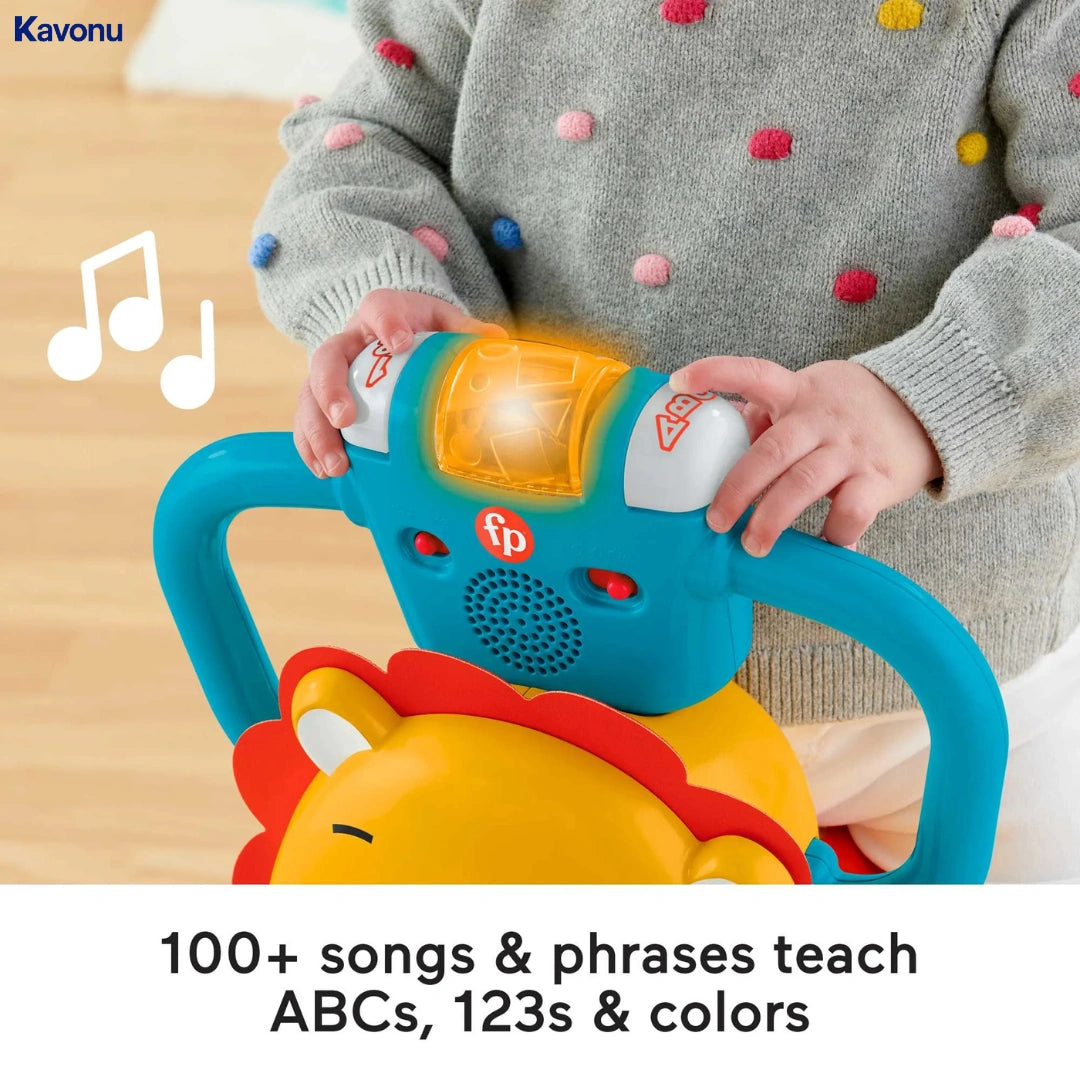 The Kavonu™ – Bounce and Spin Stationary Ride-On lets toddlers bounce up and down and spin all the way around, while the wide base keeps everything steady. Music and light-up buttons add learning fun without taking up lots of space.