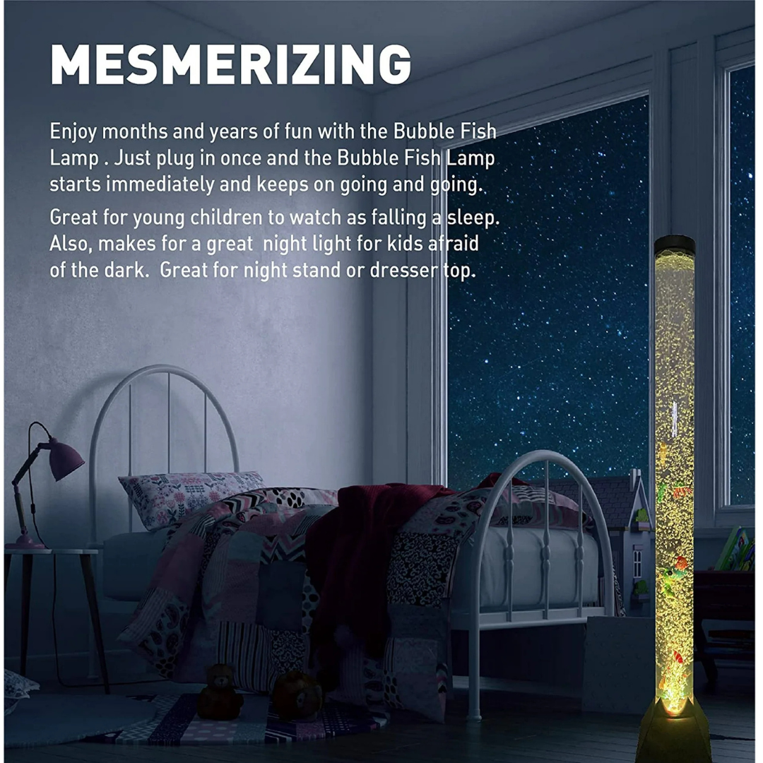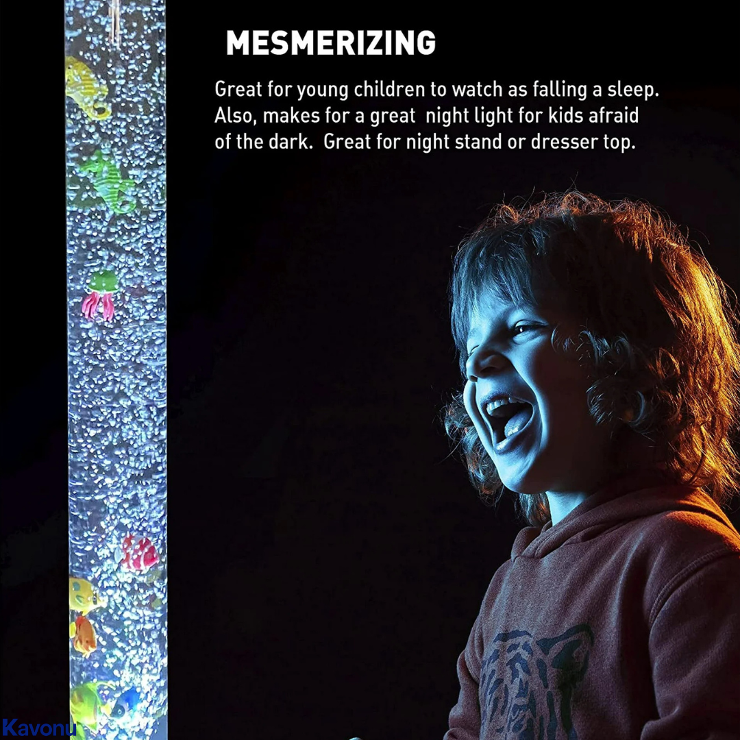 The Kavonu™ – Bubble Fish Tube Lamp brings a calming, aquarium-style ambience to bedrooms, playrooms, classrooms, and sensory spaces. Watch colorful LEDs cycle through vibrant hues as gentle bubbles lift floating faux fish in a relaxing dance.